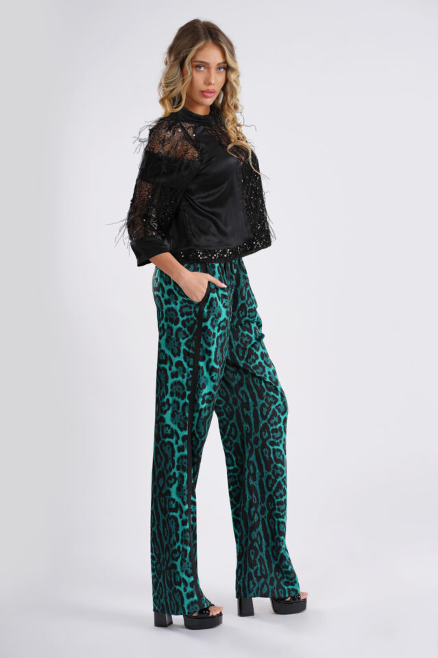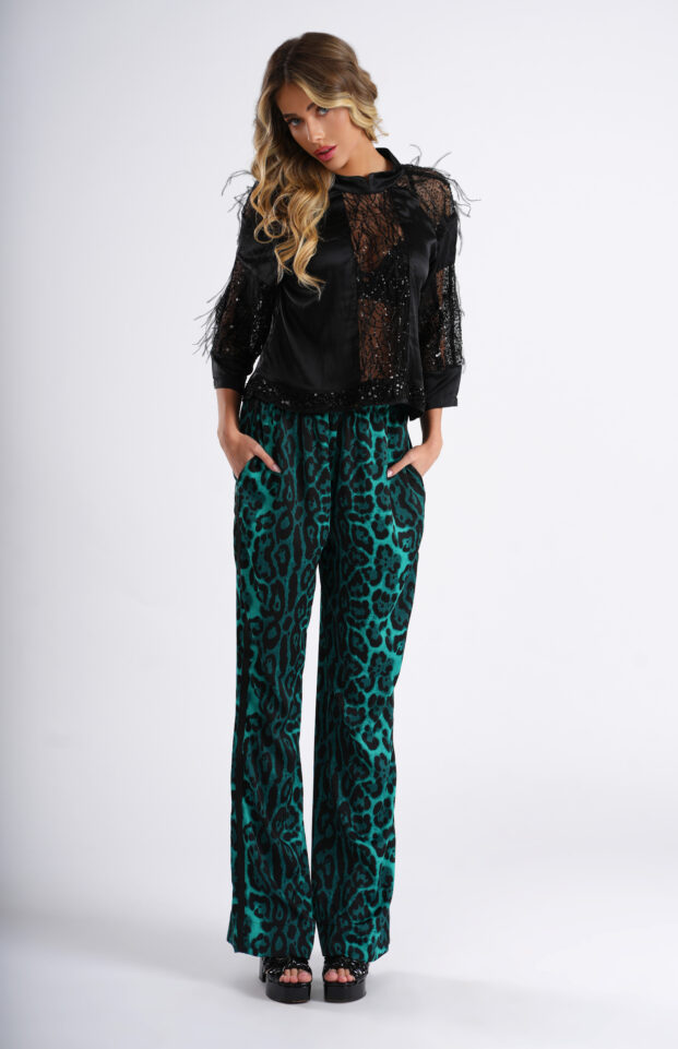 Blue animal print silk pants
