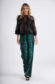 Handstitched crystal fringes pants